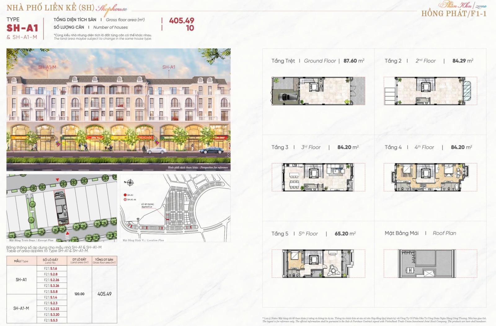 - Nhà phố liền kề (Shophouse): 170 căn - Diện tích từ 382,22m2 - 775,36m2