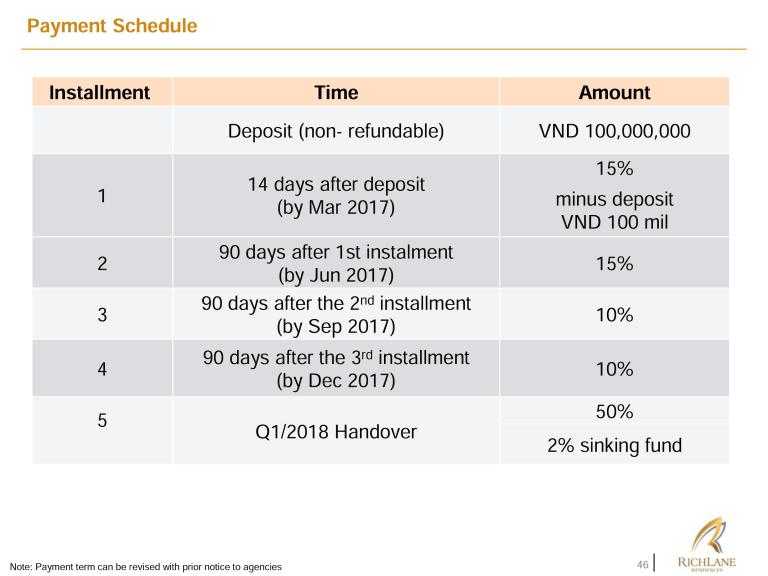 Tiến độ thanh toán của dựa án Richlane Residence