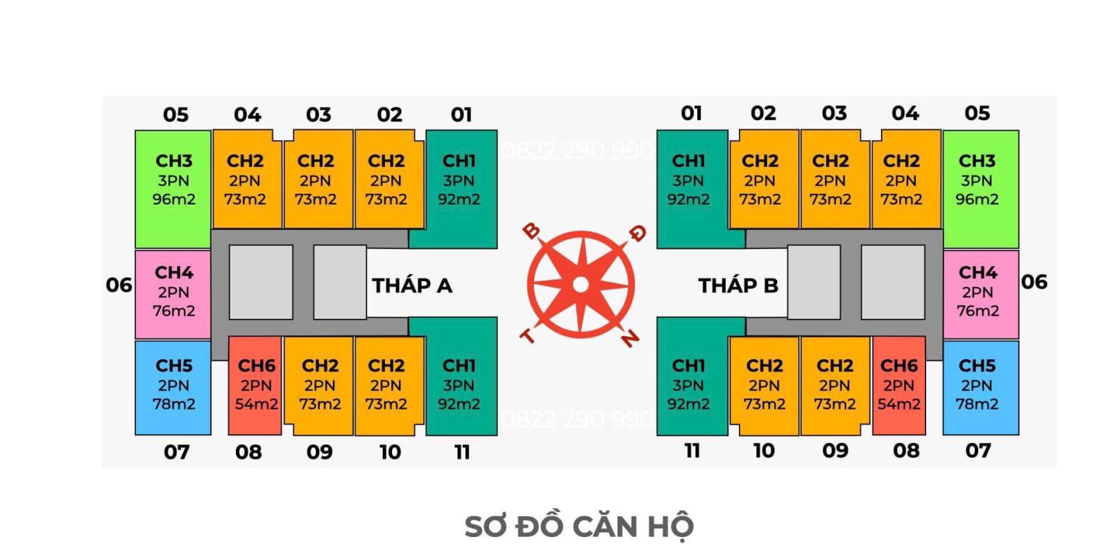 Mỗi tòa tháp tại dự án được bố trí như sau: